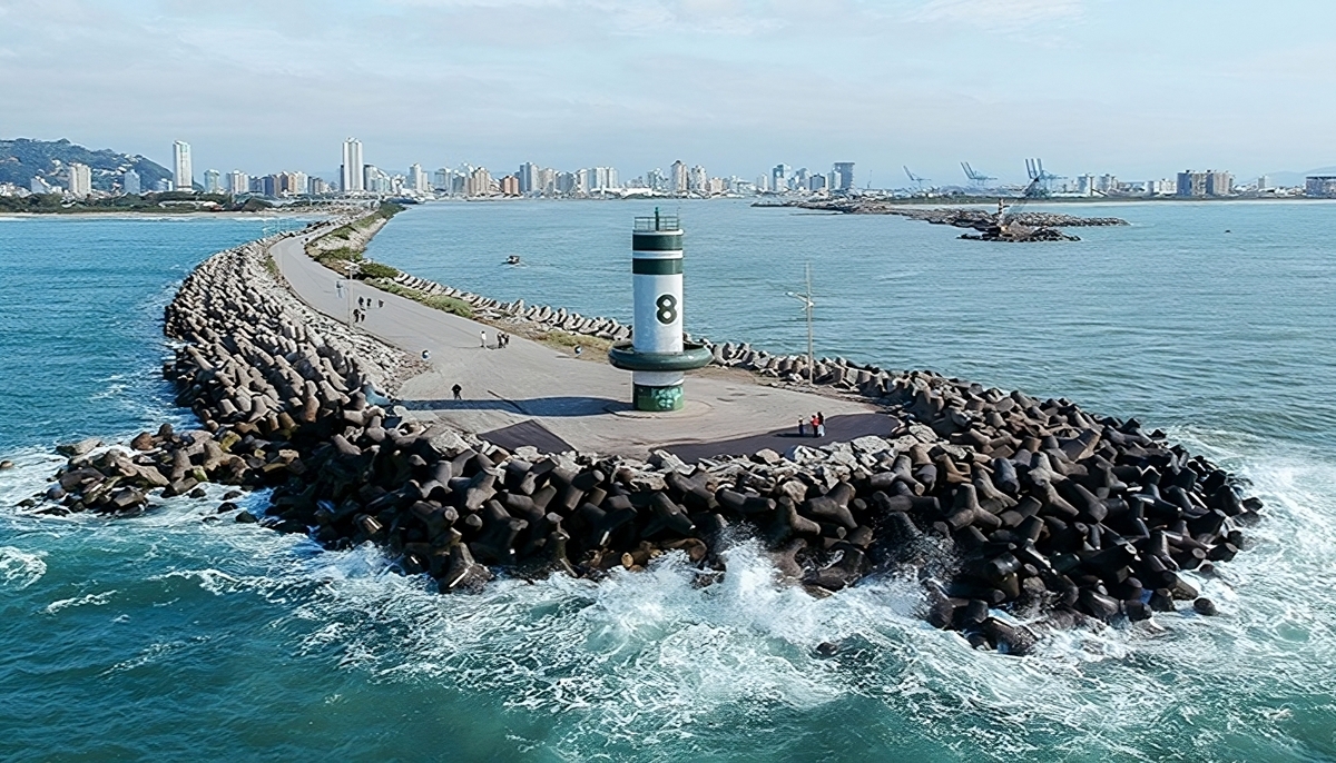 Comecemos pela Foz do Rio Itajaí, vista dos Molhes da Barra. Essas estruturas imponentes situadas na entrada do Rio Itajaí-Açu proporcionam uma vista panorâmica deslumbrante, onde as águas doces do rio se encontram com o majestoso oceano. Caminhar pelos molhes é uma experiência única, permitindo que você se conecte com a grandiosidade da natureza. Não podemos deixar de falar da entrada e saída de navios, o que deixa esse trajeto ainda mais interessante.